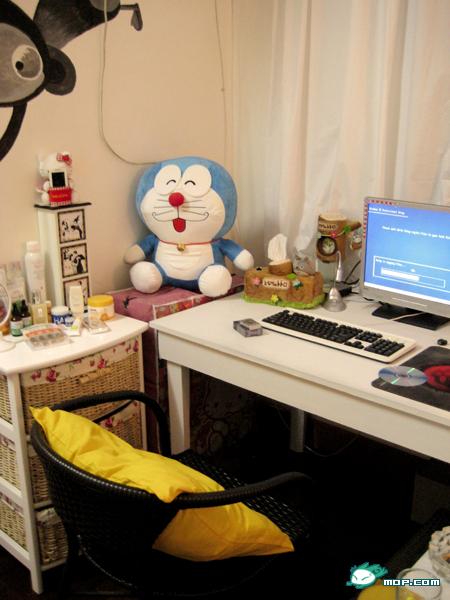 谢谢大家支持哦谢谢哈~偶们滴大电脑桌桌终于可以充分滴发挥它滴功效勒哈~!咔咔~~同时也把家里滴一部分毛绒公仔给运了过来~偶可是个超级HELLO-KITTY迷额~~家里滴HELLO-KITTY最多勒~就连办公室里也全是KITTY用具~所以偶滴同事看了偶弄的房子,还在奇怪,为虾米家里都没有看见KITTY~不想偶滴风格捏~~呵呵~偶尔换下口味也还是不错滴哦不过,偶也还是不可能完全放弃HELLO-KITTY滴~这不。搬了些公仔来勒~左边滴有叮当猫滴是偶滴地盘~右边有只超级阔耐滴KITTY滴~是LG滴地盘