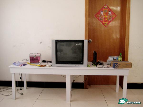 开始行动!为了节约成本~我们跑到木材市场去买勒3张木心板和一捆木棍,请师傅帮忙做勒4张全是一块板子四条腿的最简单的桌子,作为我们的电脑桌、餐桌、茶几、电视柜。连材料加工费一共才500元!~咔咔~~超划算的说!~!!