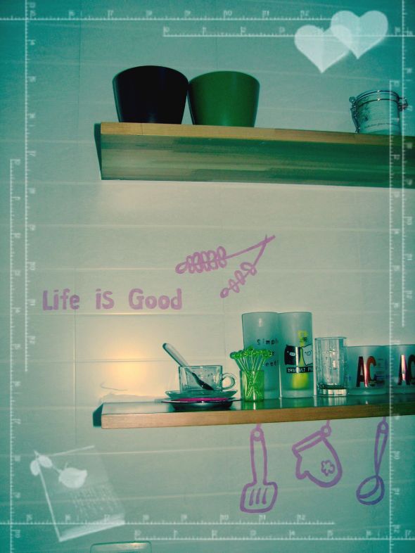 25、再来张特写吧,life is good!呵呵,这个吧,呵呵本来我是看见淘宝有卖这个墙贴的,后来我发现图片很简单嘛,所以就自己用油画颜料画墙上去了,效果还是不错地。