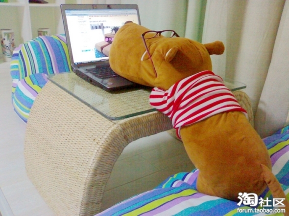 8、看我的可爱狗狗,多认真啊,看见电脑屏幕了么,上面就是这个小茶几的店铺,呵呵,狗狗在帮我确认付款呢。