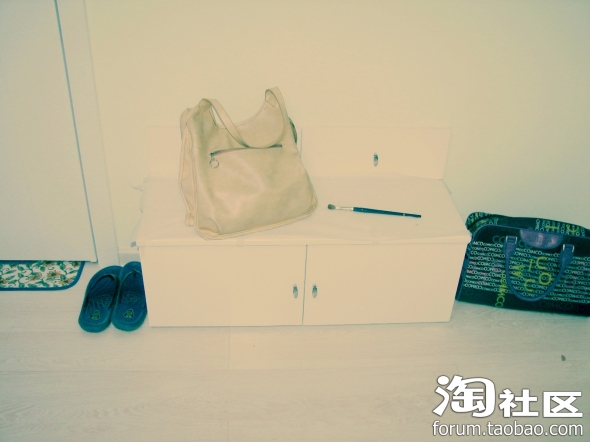 32、墙里面挖进去一块增加了容量,上面是两个藏在墙里的抽屉,放鞋刷子什么的,外面这个既是鞋柜,又是凳子,它让我每天穿靴子的时候不再东倒西歪,坐在上面慢慢穿好惬意。图片是刚装修完照的,上面老公粘的的防尘布还没揭呢。