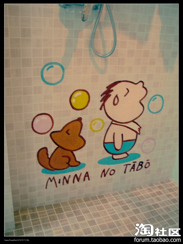 43、莲蓬头下方,我的手绘,可爱的小胖子和他的小狗。