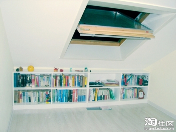 39、次卧的地台,天窗,书架——我和老公的避暑山庄,有些小乱,呵呵。