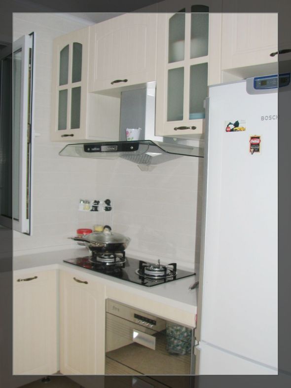 21、厨房的一角,我家冰箱很大,比我老公个子还高,呵呵,上面的冰箱贴很怀旧也是海上的小铁匠。