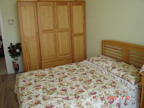 嘿嘿,换张床品再来一张, 两套床品均来自淘宝,很配我的白色家具吧,