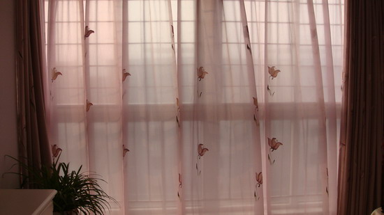 网购窗帘,把之前那个粉色换成了紫色,很配客厅的色系吧