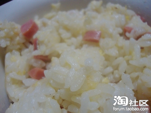材料:米饭、鸡蛋、香肠、盐、鸡精