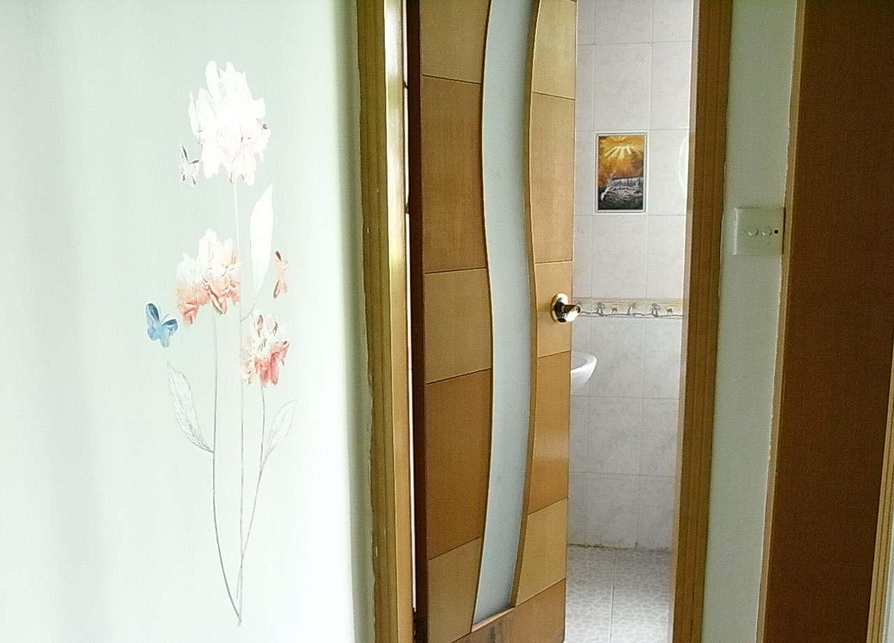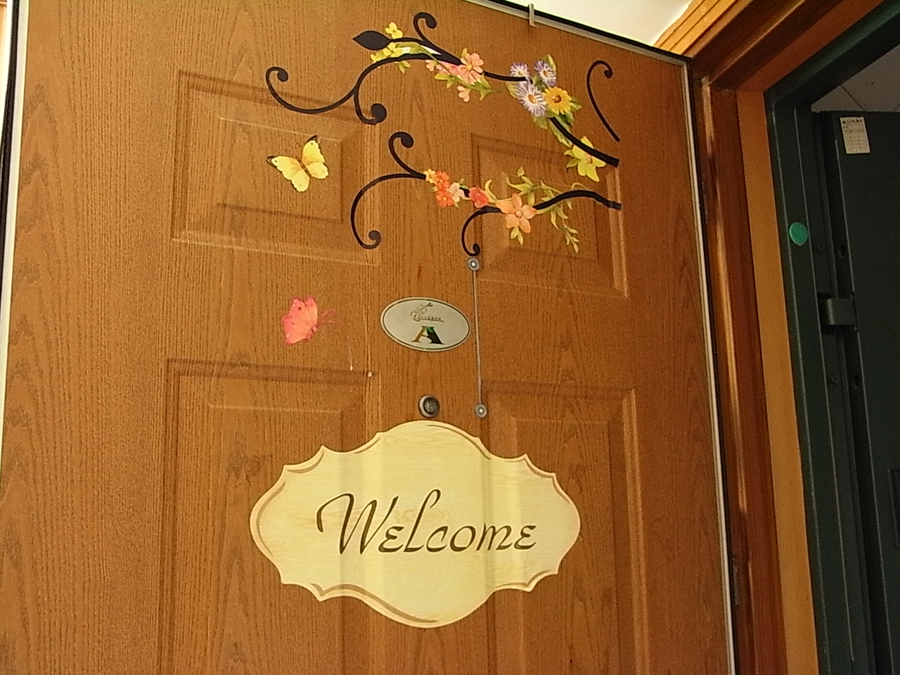 这个桃花数是贴在小房间里的,这款是第一次贴上手的,搞不懂那些树枝怎么搭配,结果出来就这个样子,有点失败。拍照片的时候顺带把走道上的花照了进来。