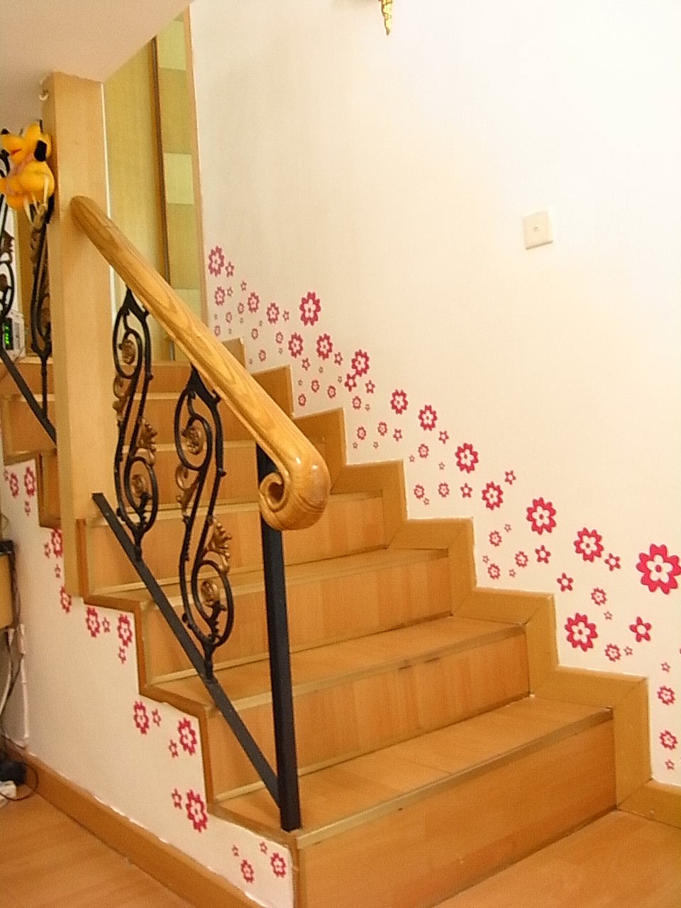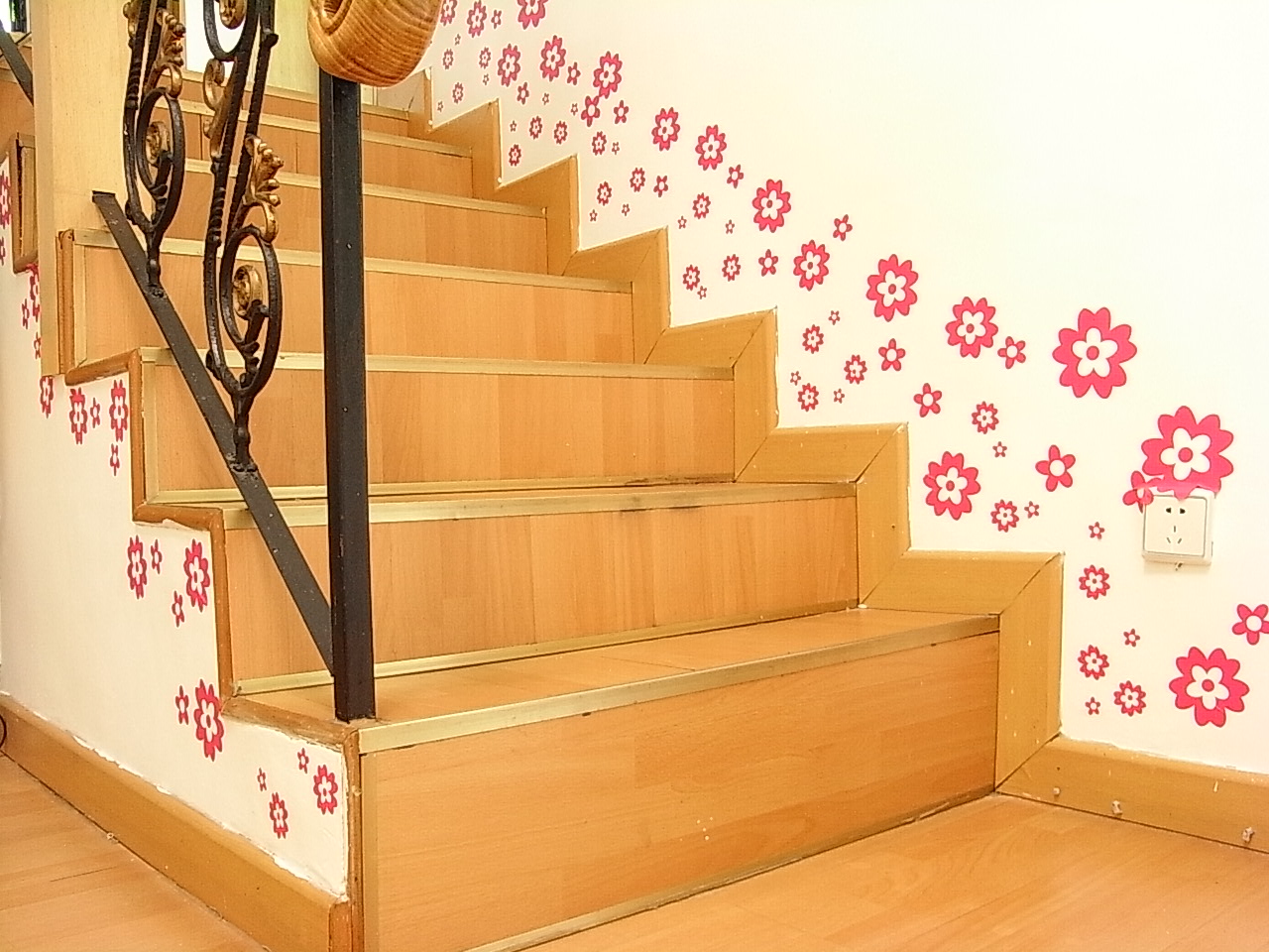 楼梯上的小碎花漂亮~~~ 比起墙贴我更喜欢墙体绘画,呵呵,就是有点贵~~