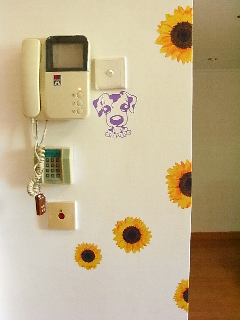 09年5月,我和老公购买了人生的第一套房子,78.5平米的三错层小复式房。值得骄傲的一点是,房子的所有款项都是我们自己付的(首期&月供),没有任何人的支持,这在80后的人群中应该属于少数吧。房子是二手房,看过无数套房子之后之所以选定这套的原因是性价比比较高:位置属于深圳南山中心区,小区配套很完善,有游泳池、篮球场、足球场、健身设施、儿童游乐场、会所,而三错层的结构也很实用,中间是客厅,客厅层高3.8米,已经做好了阁楼,楼上是两个房间,楼下是饭厅、厨房、洗手间,房子有三个阳台,两个洗手间,最重要的是,房子保养得很好,不用装修就可以直接入住了。还没买房子之前,我就看中了淘宝卖得火热的墙贴,于是等入住之后,在淘宝上买了7款墙贴(加邮费才74.30元)。房子本身的装修风格是欧式的,我买的墙贴带的是田园风,应该还算搭调的,下面上图了。