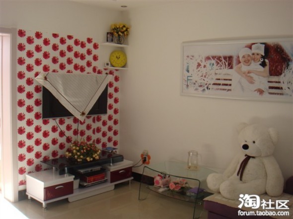 电视墙那里是当时我自己贴的壁纸,不过现在已经不是这样的了 ,一会秀下电视墙。