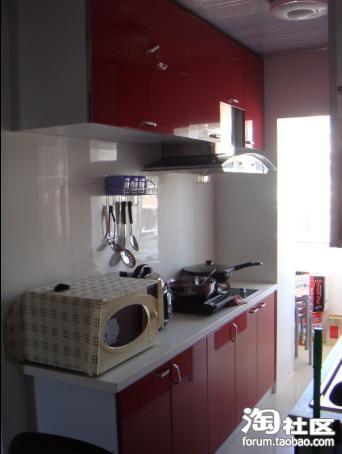 下面是我的小小的厨房,红色风格的,和背面的小阳台是连在一起的哦,我和老公在厨房里劳动刚刚适合呢。。厨房有点乱,呵呵,橱柜的把手当时还没有按结实哦。嘿嘿,各位见笑啦