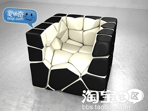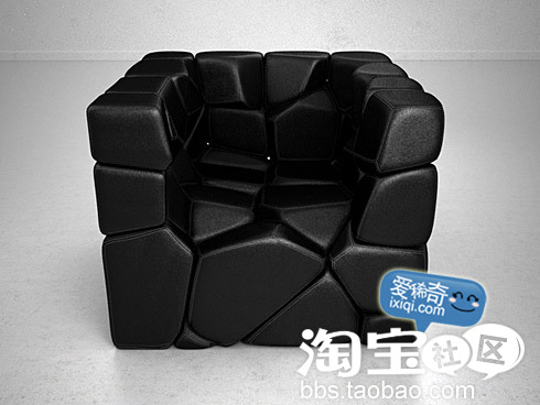 Vuzzle沙发,来自Christopher Daniel的设计,看上去是由总共59块不规则的小方块组成的规则立方体,但是,一旦将其中可以挪动的13个小方块,啊哈,它就变回群众真正喜闻乐见的那种沙发了。而且,最赞的地方在于,那13个被挪开的小方块,每个都还可以当靠垫之类的使用,一点都不浪费~而在必要时,比如,想打扫下屋子了,又能将之塞回去,重新组成一个立方体,减少空间占用~