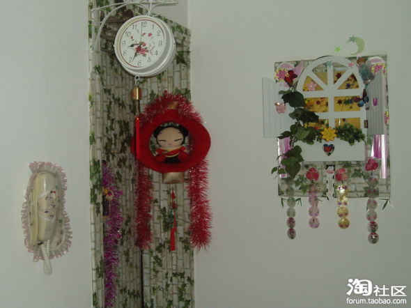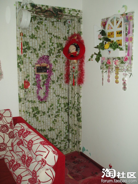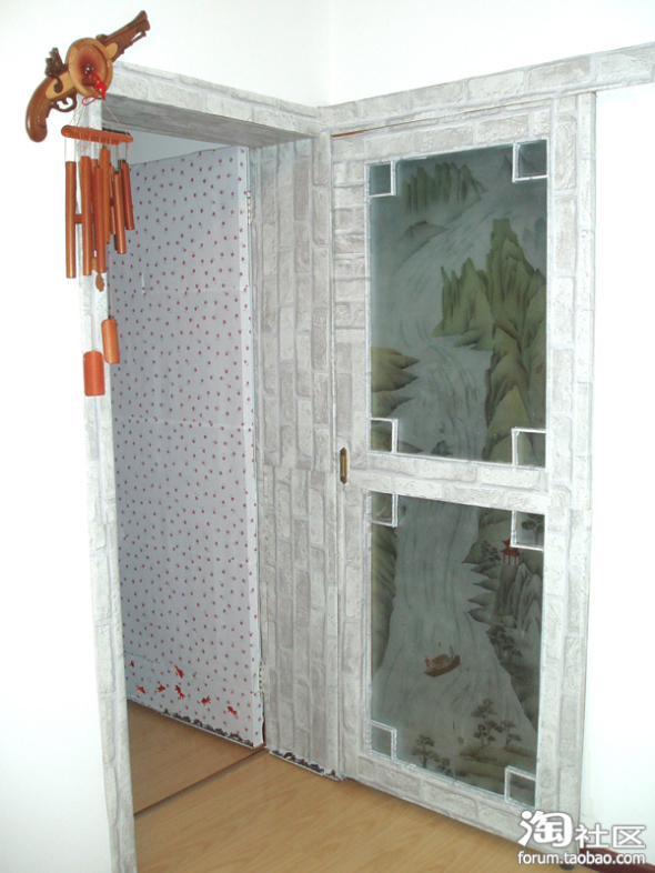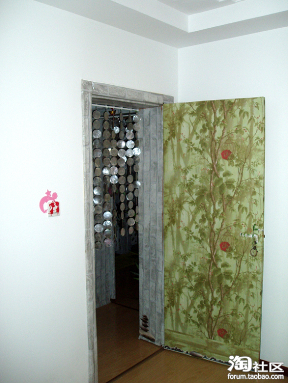 再到儿童房看看呦,这是儿童房门口,风铃和阳台上的八卦镜风铃购于TB同一样卖家,房门也是壁纸弄的