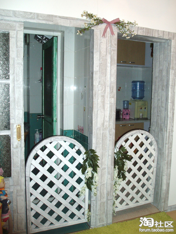 这两扇***购于淘宝,原来是原木色的,我用自喷漆喷成白色了