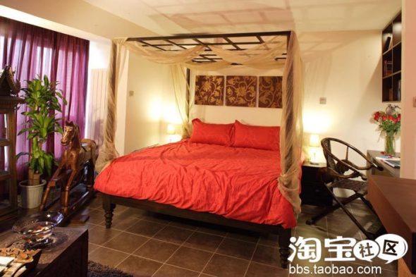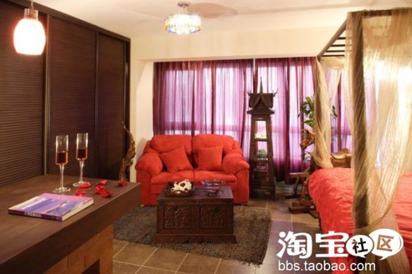采用浓烈厚重的色彩,有大量主人收集的东南亚装饰品以及有民族特色的手饰挂件。