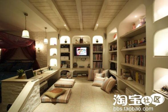 3、多功能地台:这个地台既是会客区,也是工作间,还是储物的地方,如果需要的话,还能招待客人过夜;