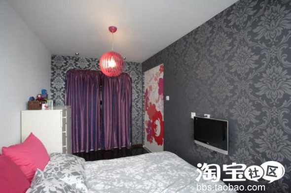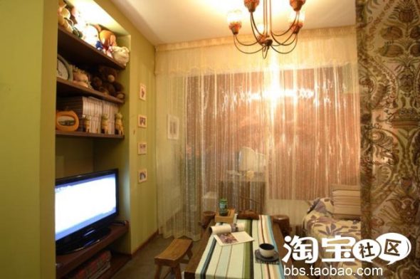 最后值得一提的是,由于丹丹不喜欢把空闲时间浪费在看电视上,所以设计师根本没有专门设计常见的电视背景墙等,只是空间的一个角落悬挂了一个小小的液晶电视。