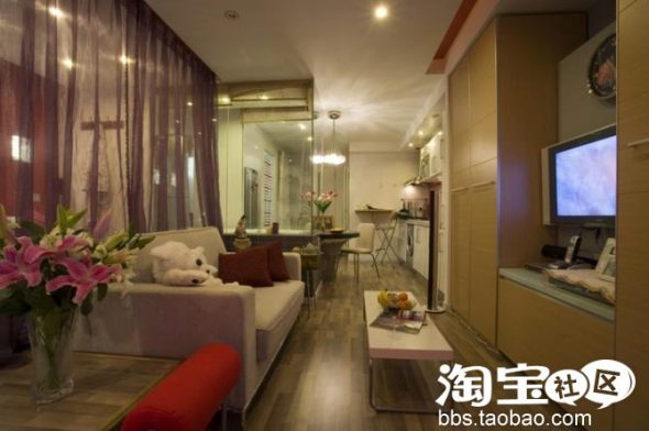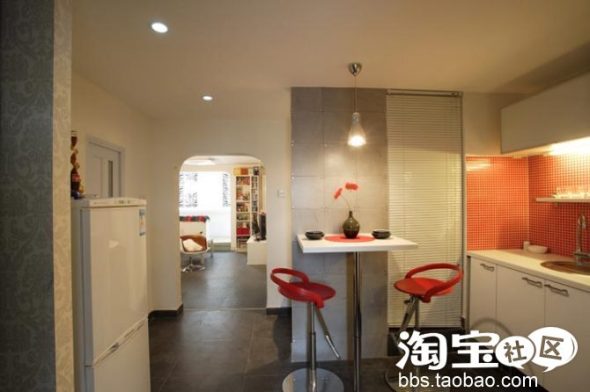 1、 由于房子本身不大,所有的功能性分区又都是必不可少的。设计师没有对空间做硬性的分隔,而是让所有分区都和谐的“相处”在一个大空间里; (图2)