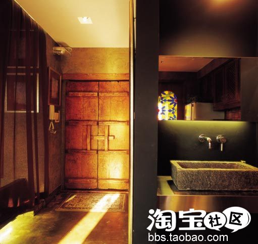 2、大门和外置洗手台:一扇饱经沧桑的木门隔离了喧嚣的世界,外置的洗手台在空间内酷感十足;