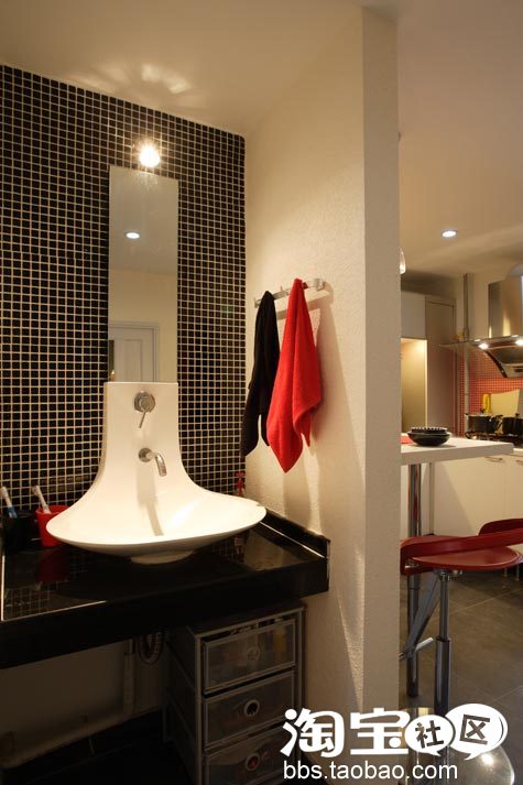 外置水盆,吧台专门定制的吧椅,更是在有效利用的同时赋予空间风格以灵性。