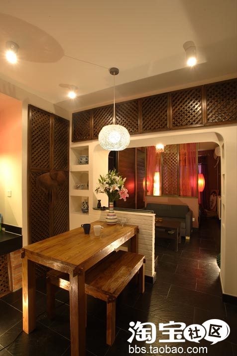 在风格把握方面,设计师比较钟爱浓郁的东南亚情调和传统的民族风情,于是便把这两种看似风马牛不相及的风格综合在一起,形成了一种独特的装饰效果。