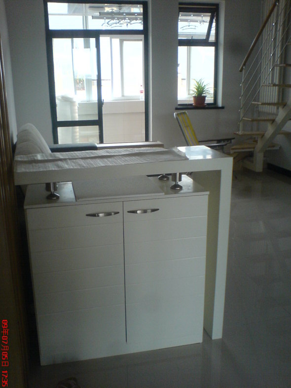 鞋柜是找装修的木工手工做的,为了做玄关—— 因为一进门就冲着沙发不好哈,(装修的人说的)