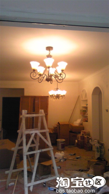 这张更乱,灯已经装好了~说到那灯才便宜额~我们总共买了7组,不到3000元,太划算了,这些灯是在成都的红牌楼一家店店买的,刚去的时候,我在想买这么多灯肯定要花掉1万多吧,因为标价全是几千块一盏~后来我老公直接说了个这个怎么发.那小伙子貌似明白了些什么,马上就报出了超低价,本来2600多一盏的灯瞬间就变了几百块,划算吧~所以买灯的朋友们去买的时候试着说一说“这个怎么发”,肯定会便宜不少哦~哈哈