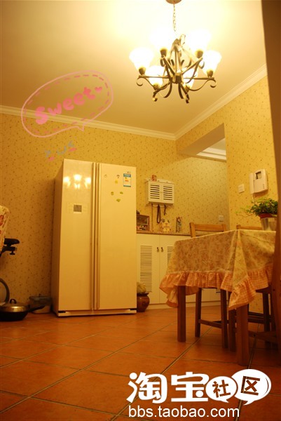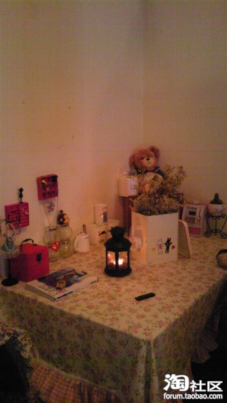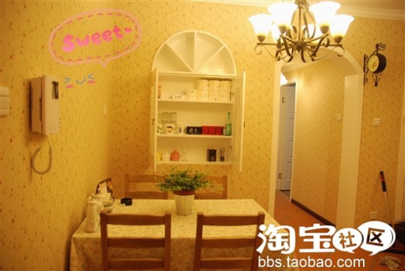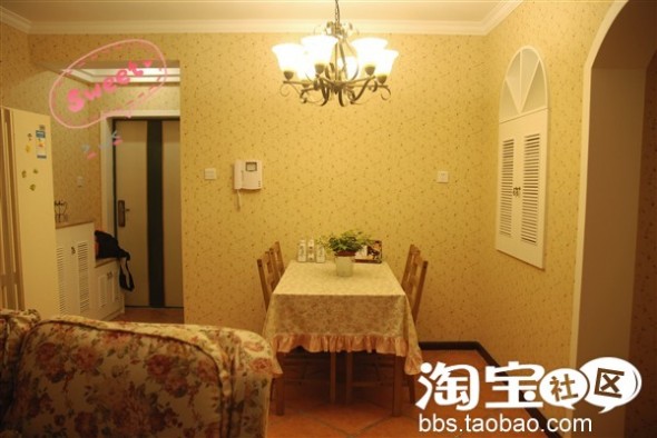 来了来了,由于工作原因没有来得及更新,不过先发几张我现在的家额~这张图里面大多是淘的,呵呵,很田园吧。这个桌布是前段时间在田园家饰专卖店买的,很漂亮的,超喜欢。