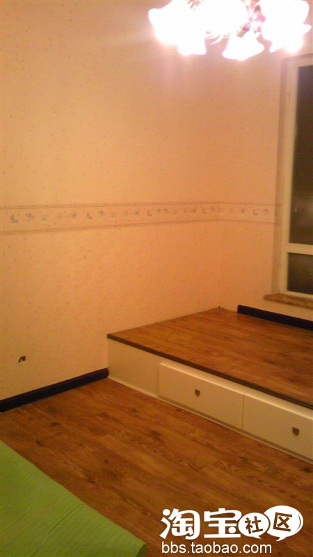 墙纸贴好了,太可爱的,走了走腰线,看上去更可爱了~~其实我觉得把那个白色的床头去了好看的多哦~榻榻米了~我的小天地哈哈哈~