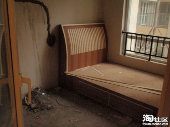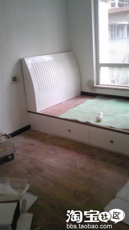 这个床也是木工做的,很失败,一点田园的影子都没有~很现代了~只有通过后期的软装来改变改变~