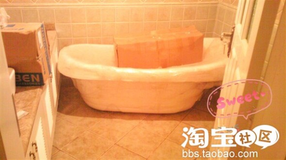 地面还没打扫,很脏~看看我的浴缸吧~太棒了~