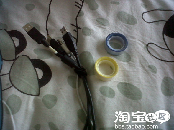 这里要注意一点!因为usb接头都是长一样的模样,所以我们一定要区分开!我把不同色的透明胶带贴在数据线的两端,这样用的时候就不会混淆了
