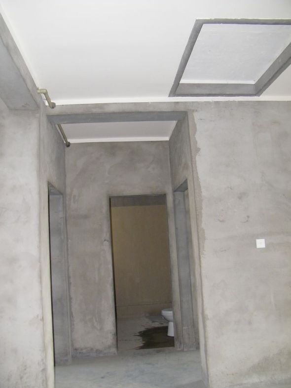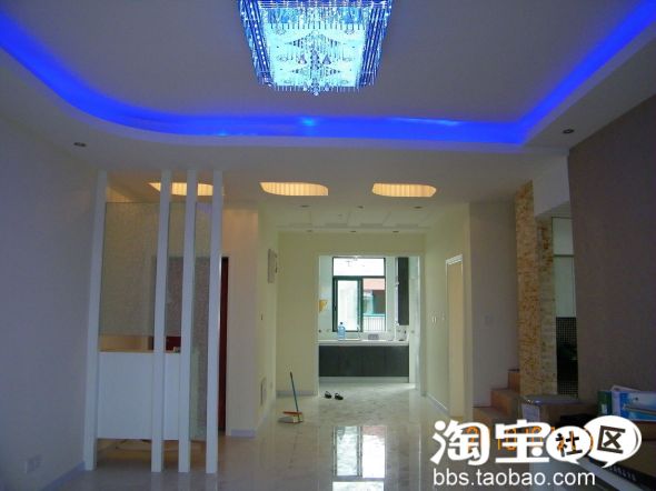 来一张厅的照片,吊顶都吊好了,郁闷啊,昨天路过1楼,发现他们居然抄袭我们家的玄关