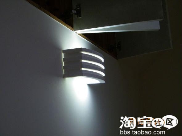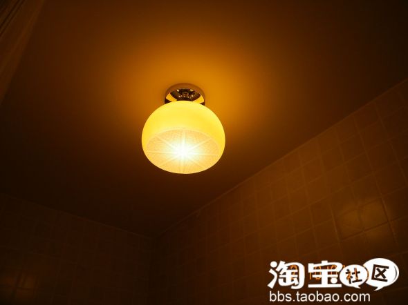 楼下卫生间的灯,和墙砖颜色质感非常相像,就是亮度不够,打开光源偏黄,呵呵 希望不影响洗澡