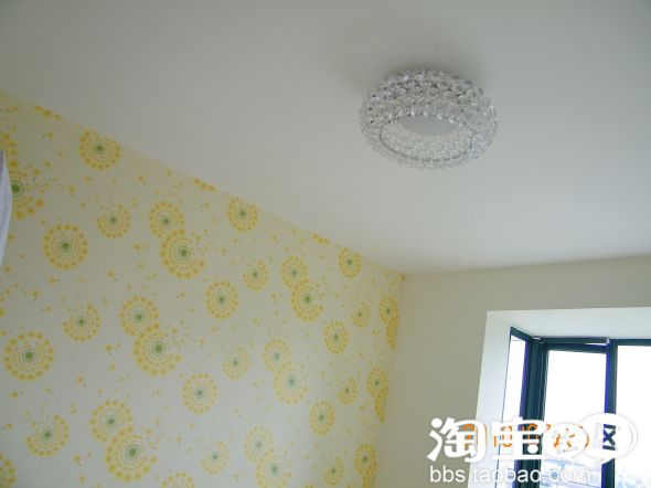主卧的灯,造型和我们墙纸的蒲公英花非常相像,打开后散开的光线也非常相像,很配墙纸