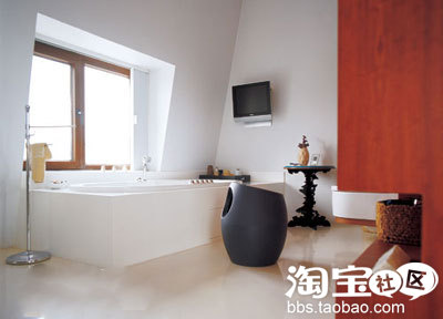 主卧的卫生间在泡澡的同噬以很享受地看电视或者投影到白墙上的幻片。