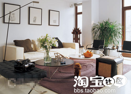 另有便是色彩太单调怎么办?比方客堂的基是白色,从地板到墙都是,我就在客堂的顶上挂个黑色的灯巢,我还要很费劲地去搞点点刷。我觉得白色像干净的画布,但又盼望它在白色的平台上有点变化,因此选油漆时选定了有点发灰的白。