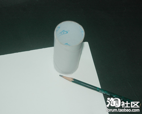 2、因为纸芯底部没有封口,所以用厚的白纸给它们做底。先用铅笔按照底部的大小在白纸上画上一圈。