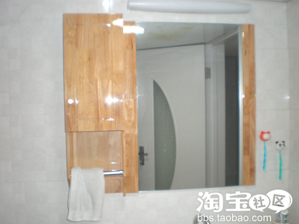 浴室柜,橡胶木本色,目前市面都叫橡木柜,真正的橡木是很贵的,这种橡胶木的用用也还可以,比pvc的高档多了,本来想买白色的,但是担心有坏的木头我看不出来,所以买了本色的,这种颜色的不好造假,你可以看到木头的纹路的,放屋子里也很清爽,100的柜子800一套,镜子旁边的侧柜让水电给我弄反了,本来是想放右侧的,结果放左侧了,