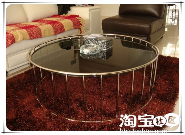 三:这款茶几我特别喜欢,他们家的家居很特别狠时尚大方,是位年轻的设计师,支撑柱是实心不锈钢,是个整体没有接缝,茶几面很厚很结实。2800元。