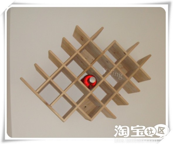 七:酒架也是利用装修废木头制作,使用原木,故意没有上漆,要的就是原始感,不要去用砂纸磨圆周边,那样才会显出原始感,我的被勤劳的木工师傅磨圆了,所以没有一点原始感,哈哈。可以做的在夸张一点,师傅没有理解我的意思,所以只能这样了。