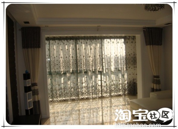 八:客厅阳台的沙幔,带闪亮的银丝,阳光照耀下更闪,是立体绣花,但很轻盈。每米78元。