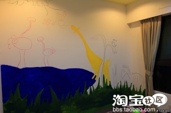 媳妇儿画到一半就跑去医院生产了,但是墙面的雏形都已经出来了,就这样我也觉得很好看了,我的媳妇儿小时候可是拿过不少奖的聪明小朋友,不随便显摆本事的好老婆~