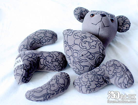 将头和四肢缝到相应位置,四肢用木纽扣连接,使之可以灵活转动