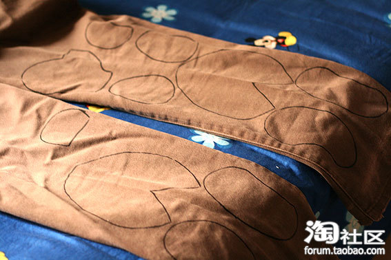 我还在小熊的一只脚上加缝了这条牛仔裤的布标,“美特斯邦威”的,哈哈