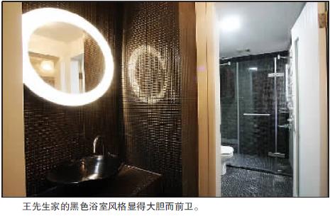 案例:黑色始终为时尚人士所钟爱。王先生是一位软件设计师,在装修位于凤岭的新房浴室时,他运用了黑色设计。王先生说:“我认为黑色浴室具有雄性气概,也很前卫。”