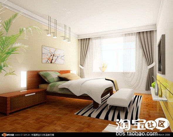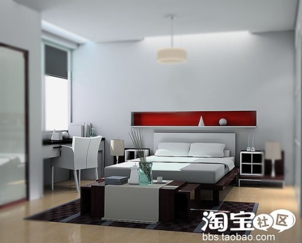 现代住宅的发展,小家庭的组建,人们心理上的要求,希望卧室具有私密性、蔽光性,配套洗浴,静谧舒适,与住宅内其他房间分隔开来。卧室可能是整套房子中最私人的空间,你可以完全根据自己的想法来设计,不必去考虑别人的看法。纯粹的卧室是睡眠和更衣的房间,但是更确切地说卧室是一个完全属于主人自己的房间,在这里读书、看报、看电视、写信、喝茶等等,当你不愿被他人打扰时你就会躲进卧室里。所以,设计卧室时首先应考虑的是让你感到舒适和安静。