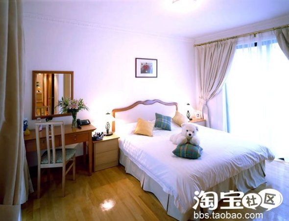 我要有这么大的卧室就好了。回帖是美德很漂亮吃不消,很多都是宾馆房间啊。一点家的温馨都没有哎,这里的卧室的面积好大好大啊,所以就不评价啦,完全没有意义。我觉得我的首要任务是找到那个可以装修的地方!还好啦