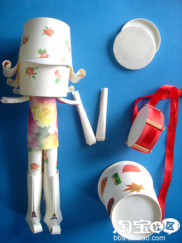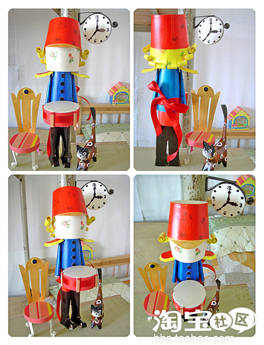 有没有人要提出疑问的?(为什么不画脸?)其实一开始有给它画了张挺美型的脸啦~但搭上去好奇怪?所以~我想说干脆给大家留点想象空间好了!嘻嘻,很“堂而皇之”的理由哇。这样手工的感觉其实挺特别,保留了纸杯原有的图案,涂色时候也不刻意覆盖它(变成暗纹效果),整体来说我自己还挺满意啦,呵呵!